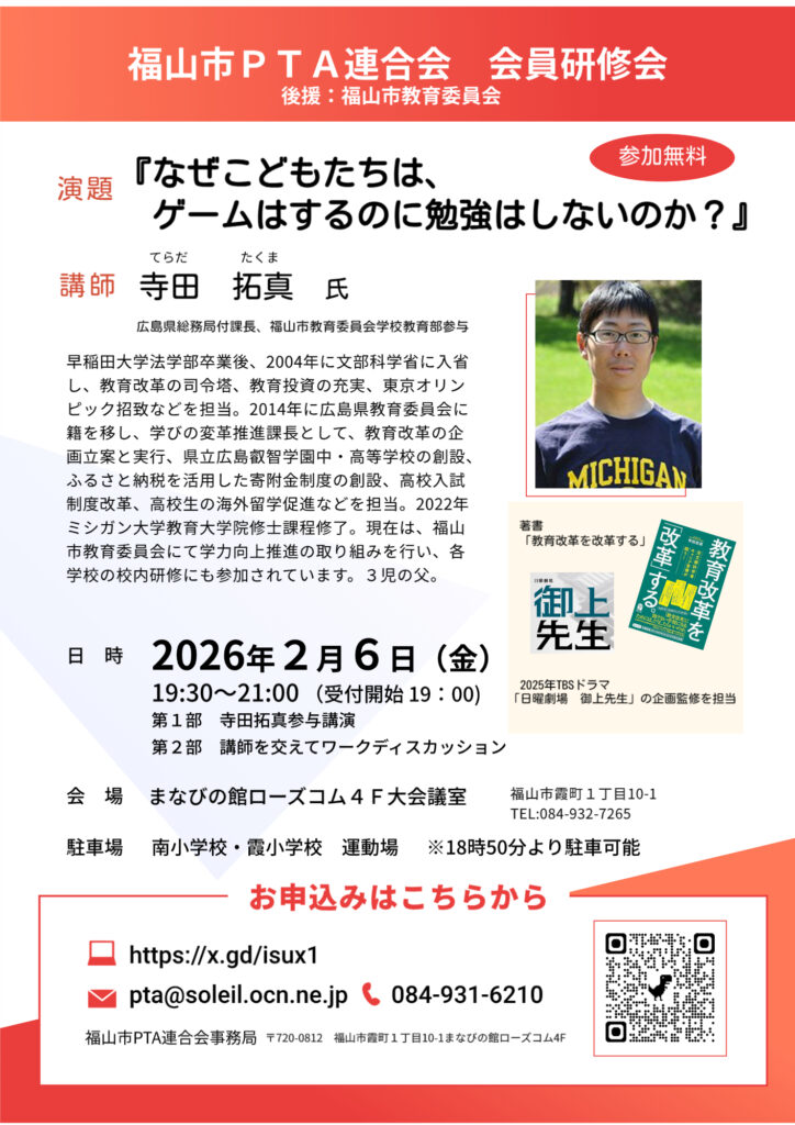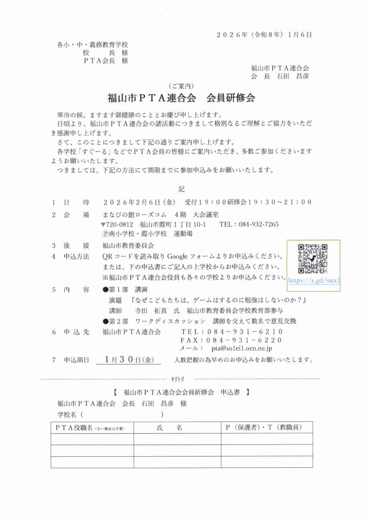 ■2026年2月6日(金) 福山市PTA連合会会員研修会を開催します